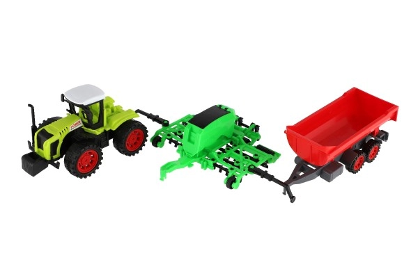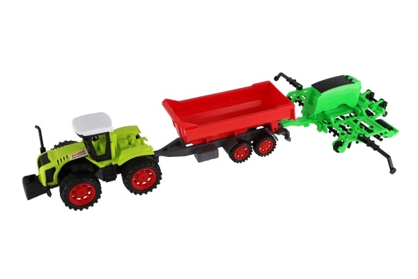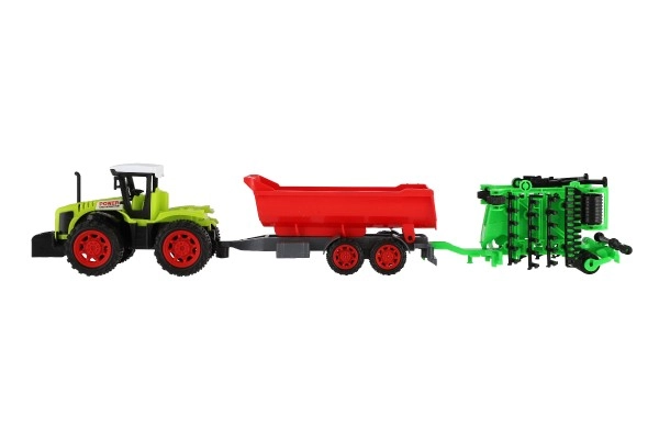 Traktorius su priekaba ir vartais yra puikus žaislas mažiesiems ūkininkams. 55 cm ilgio modelis suteikia realistišką pramogą ir aukštos kokybės konstrukciją, kuri atlaikys net intensyvius vaikų žaidimus. Priekabą ir vartus lengva prijungti bei atjungti, todėl vaikai gali eksperimentuoti su įvairiais scenarijais.