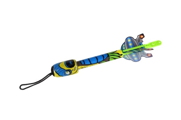 Žaislas pasižymi ryškiu, spalvingu dizainu ir skrydžio metu skleidžia švilpiantį garsą, kuris traukia dėmesį ir didina pramogą.