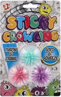 Linksmas trijų lipnių kamuoliukų rinkinys, kurie, mestelėti ant lygaus paviršiaus, pavyzdžiui, stiklo ar plytelių, lėtai „ropoja“ žemyn. Kamuoliukai pagaminti iš silikono, yra minkšti, spaudomi ir dėl lipnaus paviršiaus suteikia daug jutiminio smagumo. Idealu fidget ir antistresiniam žaidimui, paprasta naudoti, tinka vaikams nuo 3 metų.