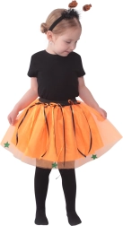 Padovanokite mažajai puošeivai išskirtinę išvaizdą kiekvienai helovyno šventei. Šis kostiumas, su būdingomis oranžine ir juoda spalvomis, žavi puriu tutu sijonėliu ir puikiai derančiu lankeliu su mielais moliūčiukais. Dėl tamprio juosmens sijonėlis lengvai apsivelkamas ir patogiai dėvimas.