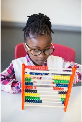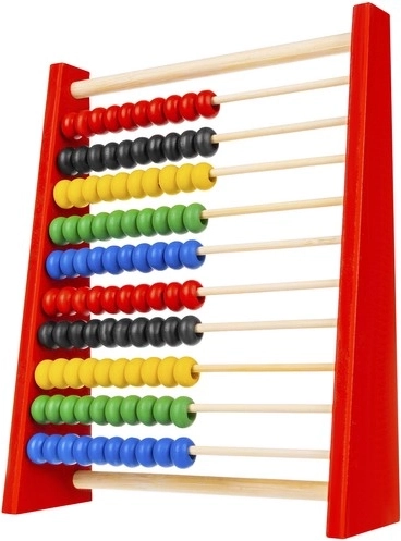 Kiekvienoje iš 10 eilių yra po 10 sodrių spalvų karoliukų, kurie padeda vizualiai orientuotis, žingsnis po žingsnio sudėti ir atimti.