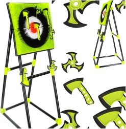 Atraskite veiksmo kupiną taikinių pramogą, įkvėptą ninja pasaulio – su silikoniniais kirvukais ir širikenais vaikai saugiai lavina taikymąsi ir susikaupimą. Tvirtas laisvai stovintis rėmas su stovu leidžia greitai surinkti ir patogiai laikyti priedus.