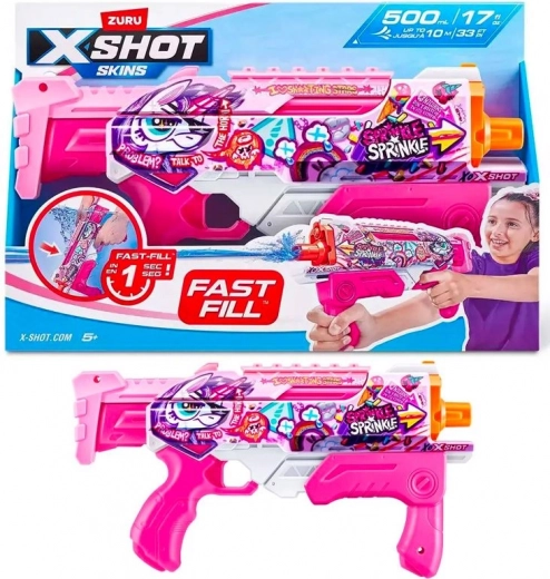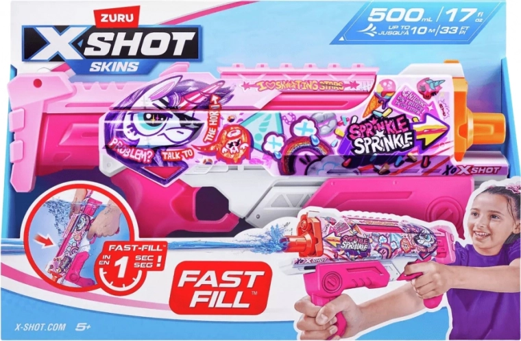 Mėgaukitės karštomis vasaros dienomis su vandens pistoletu ZURU X-Shot Skins Fast-Fill rožinio dizaino. Dėl greito pildymo technologijos vandenį papildysite per kelias sekundes, šauna net iki 10 metrų, o jo ergonomiška forma puikiai tinka vaikų rankoms. Lengvas, patvarus ir pasiruošęs begalinėms vandens kovoms.