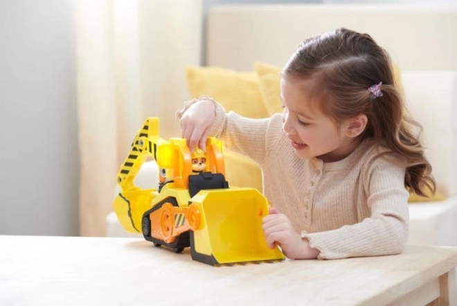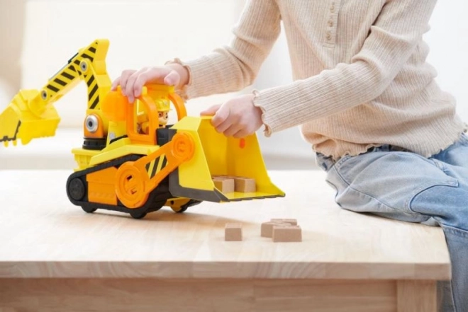 Leiskitės į statybinius nuotykius su deluksiniu buldozeriu iš serijos PAW PATROL RUBBLE IR JO KOMANDA. Tvirtas transportas turi judančią kaušą ir kasimo strėlę, tikrus ratus ir šviesas bei garsus, kurie įsijungia pasodinant figūrėlę į sėdynę. Rinkinyje yra kolekcinė figūrėlė, aukštesnė nei 5 cm – kaip seriale.