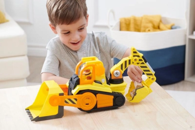 Mėgstamas statybininkas leidžiasi į darbus su savo deluksiniu buldozeriu. Vaikai gali pasodinti figūrėlę į kabiną ir vienu paspaudimu įjungti mirksinčias šviesas ir realistinius garso efektus. Priekinė kauša ir galinė kasimo strėlė yra visiškai judrios, tad kasti, semti ir krauti – vienas malonumas.