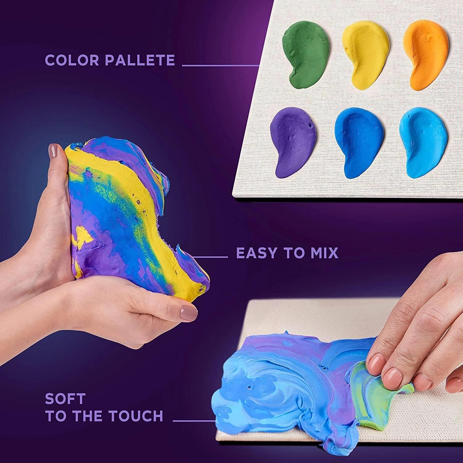 - Pilnas rinkinys: drobė, iliustruotas vadovas, formavimo įrankis, oras džiūstanti masė