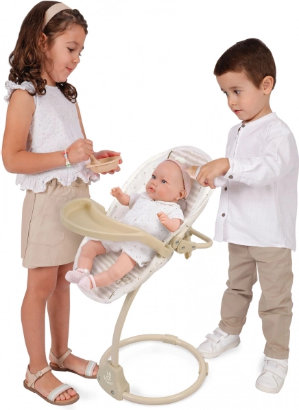 - Kėdutė/supynės su padėkliuku; lėlė ir priedai nepridedami