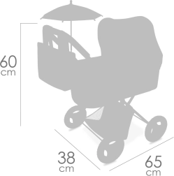Skėtis nuo saulės, nuimamas krepšys, lopšio uždangalas, čiužinukas ir apatinis krepšys – viskas patogiam lėlių vežiojimui.