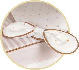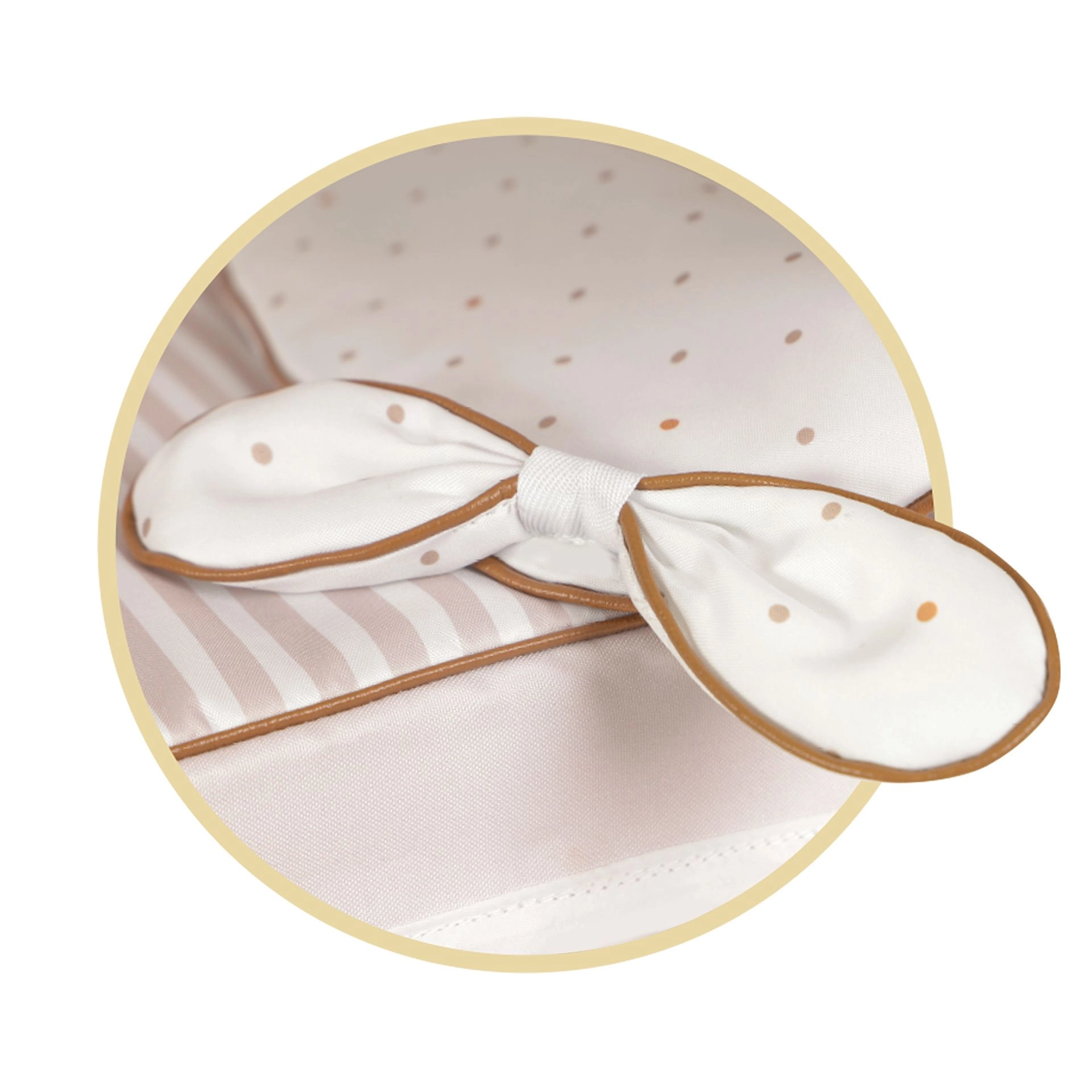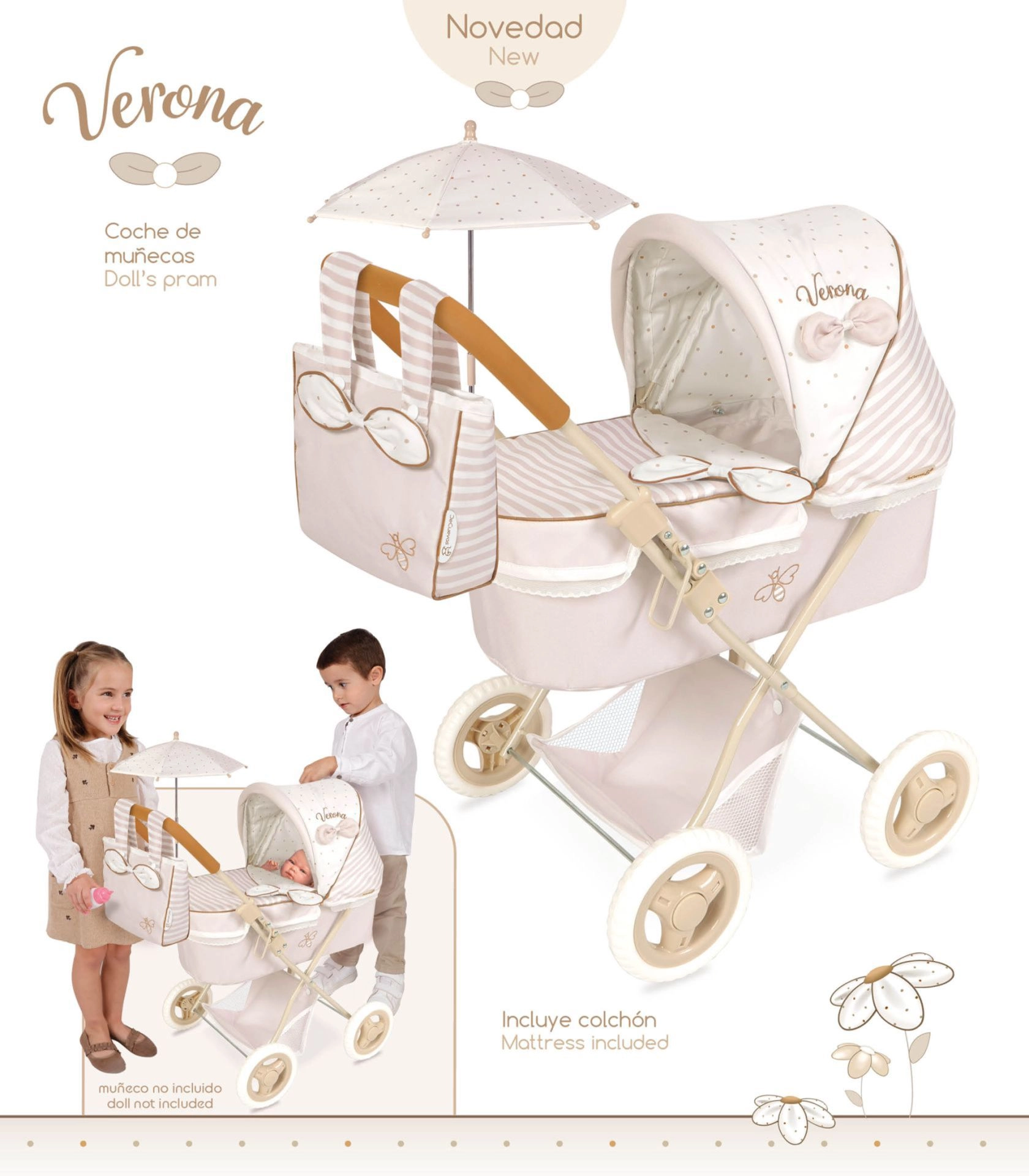 Išbaigtas lėlių vežimėlis, derinantis šviesiai smėlinę ir baltą spalvas su subtiliais taškeliais ir juostelėmis, pradžiugins kiekvieną mažą mamą. Natūralią išvaizdą papildo mieli kaspinėliai ir smulkūs bičių siuvinėjimai. Dėl sulankstomos konstrukcijos vežimėlį lengva nešiotis ir laikyti.