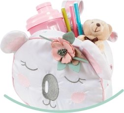 Švelni spalvų derinimo paletė su gėlių motyvu ir miegančios koalos veiduku patiks vaikams iš pirmo žvilgsnio.