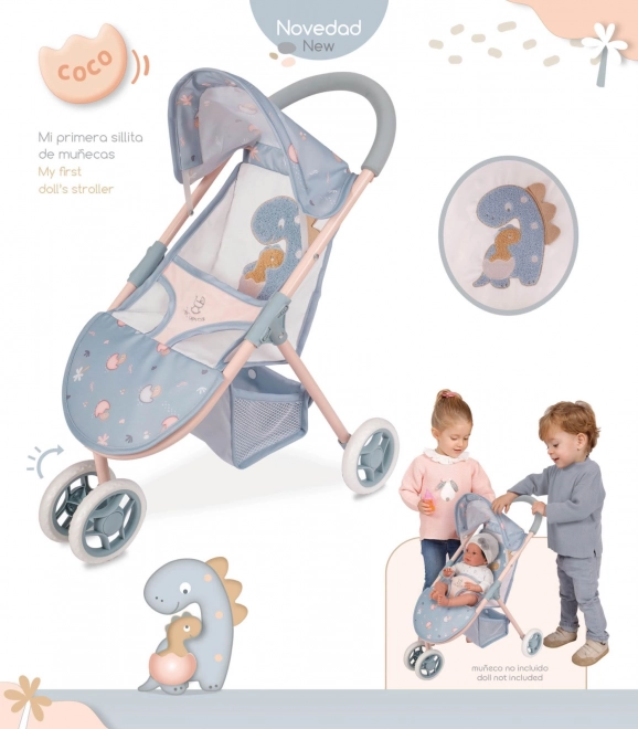 Atraskite mielą sportinį lėlių vežimėlį su dino mamos ir jauniklio motyvu iš kolekcijos COCO 2024. Jis derina ispanišką dizainą, kokybišką pagamimą ir nedidelį svorį, kad būtų patogu valdyti net patiems mažiausiems. Dėl tvirtos metalo, plastiko ir tekstilės konstrukcijos atlaiko kasdienį žaidimą.
