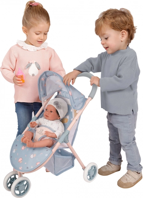 Pasukamas priekinis dvigubas ratas palengvina posūkius, apatinis krepšelis suteikia praktišką daiktų laikymo vietą, o tritaškis diržas saugiai pritvirtins lėlę iki 46 cm dydžio. Kompaktiški 55 × 48 × 33 cm (a × g × p) matmenys užtikrina lengvą pervežimą ir laikymą.