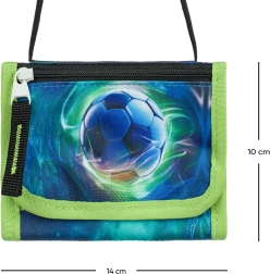Piniginė su futbolo motyvu siūlo praktišką ir saugų būdą laikyti daiktus tvarkingai ir lengvai pasiekiamus.