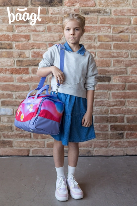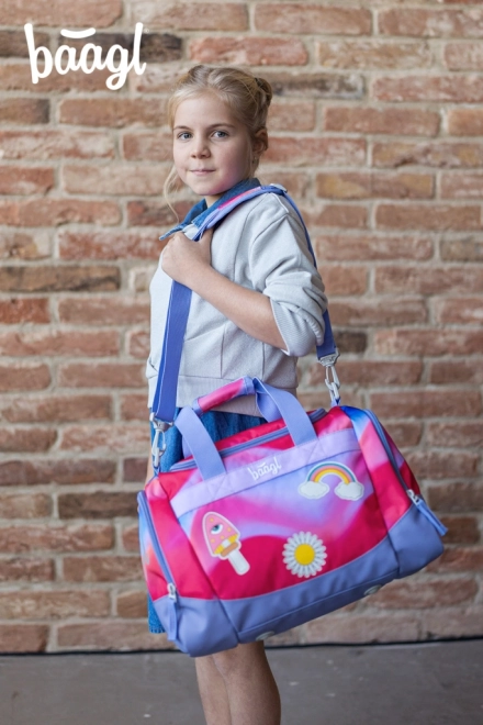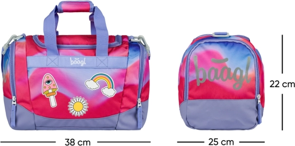 Lengva ir stilinga vaikiška sportinė tašė BAAGL su vaivorykštės motyvu idealiai tinka būreliams, kūno kultūrai ir kaip rankinis bagažas. Ji siūlo erdvią pagrindinę kamerą su plačiu dangčiu, atskirą kišenę avalynei, nuimamą reguliuojamo ilgio diržą ir sutvirtintą vandeniui atsparų dugną. Sklandų atidarymą užtikrina patikimi YKK užtrauktukai, o atšvaitiniai elementai pasirūpina saugumu.