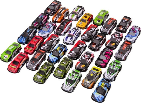 Ši turtinga kolekcija apima 32 unikalius automobiliukus ryškiomis spalvomis. Dėl laisvos eigos pavaros automobiliukai lengvai rieda bet kokiu lygiu paviršiumi ir kviečia į lenktynes bei kūrybinius žaidimų scenarijus. Rinkinys idealiai tinka namų trasoms, improvizuotoms rali varžyboms ir žaidimams grupėje.