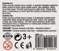 Plastinis kazu – puikus būdas supažindinti vaikus ir pradedančiuosius su muzikos pasauliu. Groti itin paprasta – vietoje pūtimo tereikia niūniuoti į antgalį, o kazu sukuria būdingą dūzgiančiai skambantį toną. Dėl kompaktiško 12 cm ilgio jis lengvai telpa kišenėje ir visada po ranka.