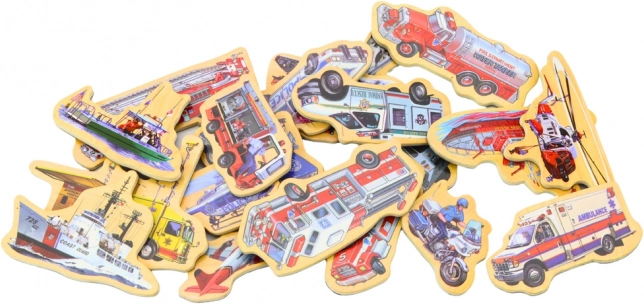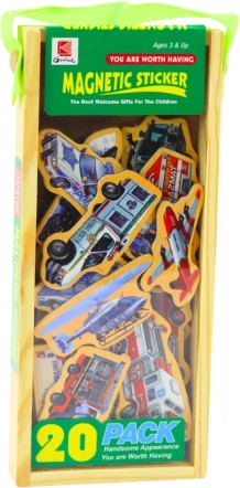 Rinkinį sudaro 20 skirtingų medinių magnetų, kiekvienas su unikaliu dizainu: rasite transporto priemones, laivus ir lėktuvus, kurie padeda vaikams plėsti žinias apie įvairias transporto priemones.