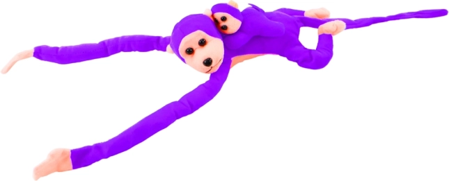 Violetinė spalva ir jauniklio buvimas daro beždžionėlį patrauklų vaikams ir malonų akiai.