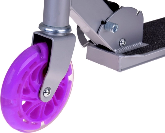 Lengvas ir patvarus sulankstomas vaikiškas paspirtukas su LED šviečiančiais ratais, reguliuojamo aukščio vairu ir neslystančia platforma. Lengvai sulankstomas, patogiai nešiojamas, o galinis pakojis-stabdžių sparnas užtikrina saugumą net važiuojant greičiau. Puikiai tinka pasivaikščiojimams parke, dviračių takais ir kelionėms.