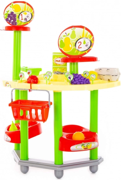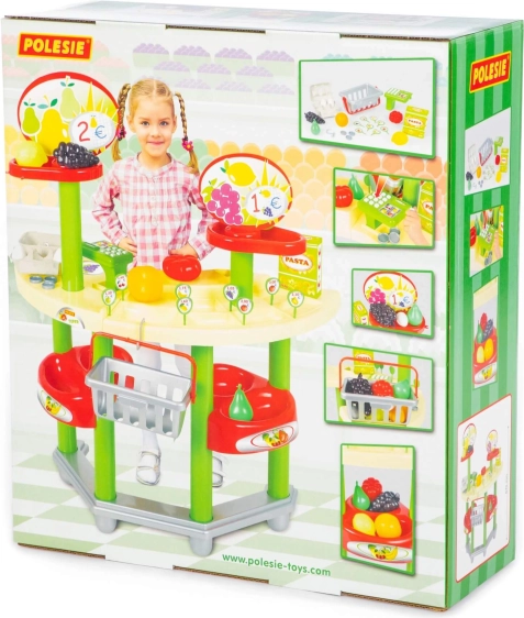 Spalvingas ir funkcionalus vaikiškas prekybos centrasPolesie sužavės mažuosius pardavėjus. Jame yra prekybos stalas su kasa, prekių lentynėlės ir pirkinių krepšelis autentiškam parduotuvės žaidimui. Skatina komunikacinių įgūdžių ir pagrindinių matematikos gebėjimų ugdymą skaičiuojant kainas ir atiduodant grąžą. Pagamintas iš kokybiško, netoksiško plastiko, saugus vaikams nuo 3 metų.