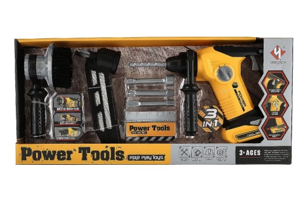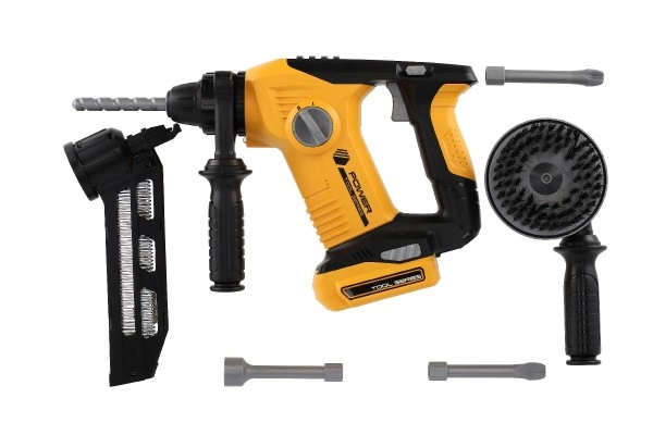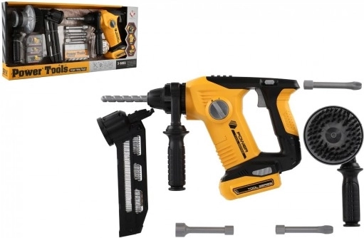 Vaikiškas smūginis grąžtas puikiai sukurtas mažiesiems meistreliams, norintiems įsitraukti į taisymo ir statybos veiklas. Rinkinį sudaro keičiami antgaliai, sukamasis šepetys ir vinių kalimo prietaisas, todėl vaikai turi daug žaidimo galimybių.