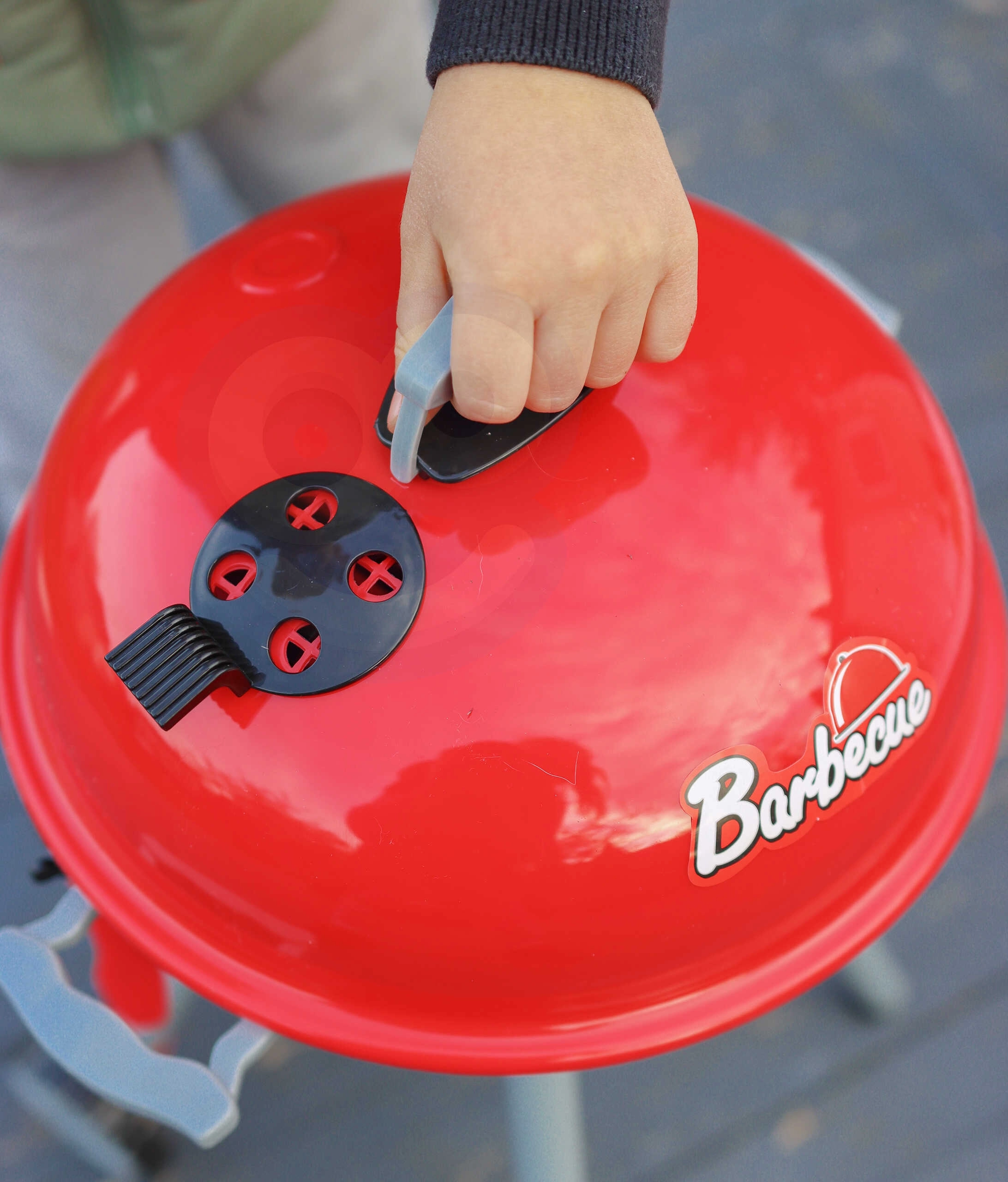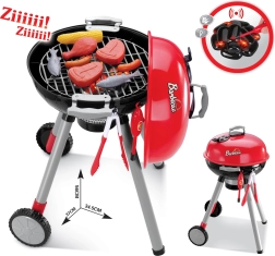 Rinkinyje yra viskas, ko reikia šeimos BBQ imitacijai: grotelių angos, gausus plastikinių maisto produktų pasirinkimas (dešrelės, kepsniai, vištiena, žuvis, kukurūzai, baklažanas), įrankiai, lėkštutės, puodeliai ir net pipirų malūnėlis. Nuimamas dangtis saugo groteles po „kepimo“, o dėl ratukų ir rankenos vaikai lengvai perstums kepsninę į terasą arba į vaikų kambarį.