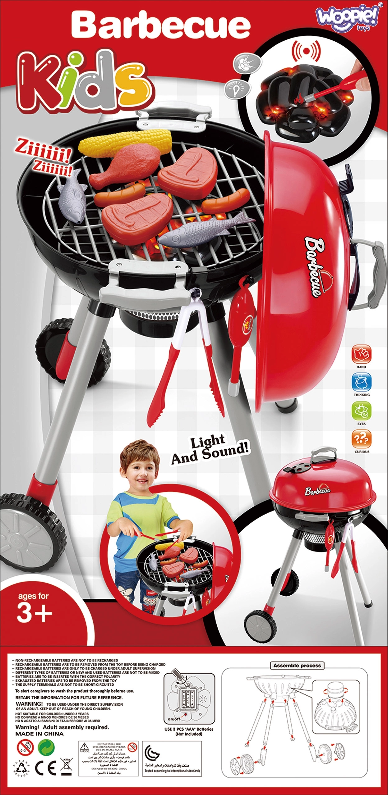 Vaikiška WOOPIE kepsninė atrodo ir veikia kaip tikra. Tereikia priartinti žiebtuvėlį prie anglių ir įsijungs realistiški šviesos ir garso efektai, imituojantys įkaitinimą. Raudonai žėrinčios anglys ir būdingas garsas sužavės visus mažus gaminimo gerbėjus.