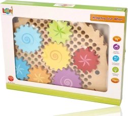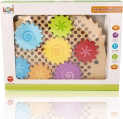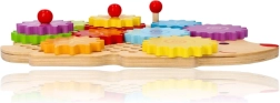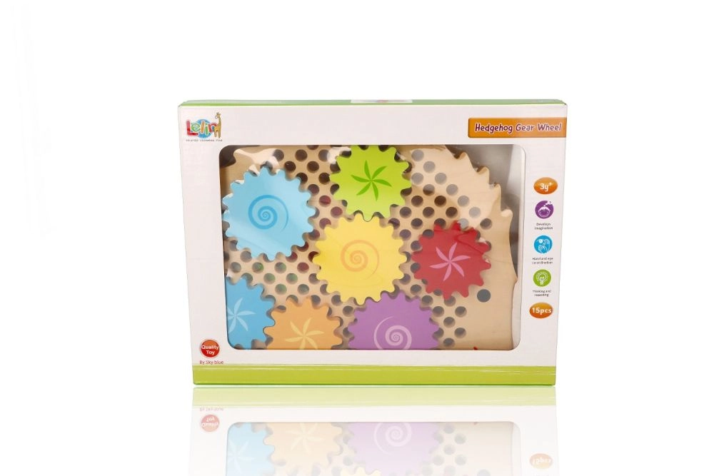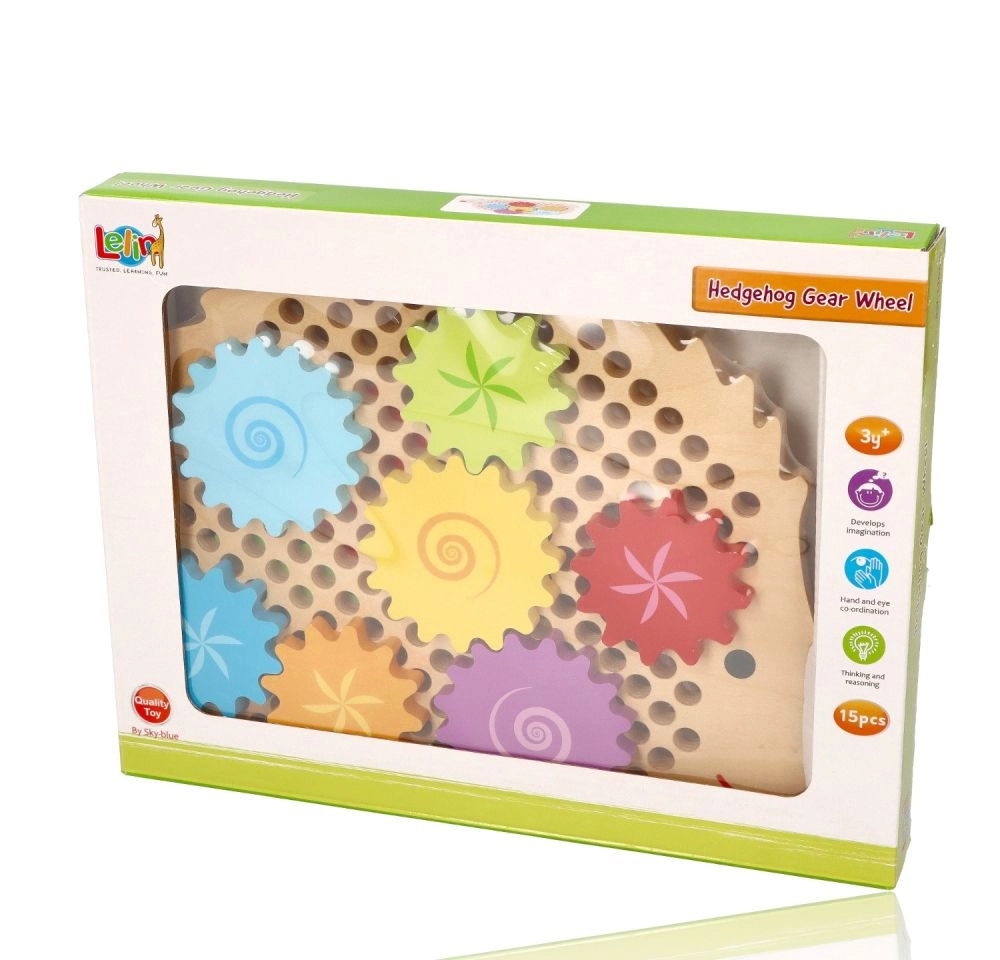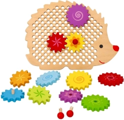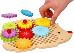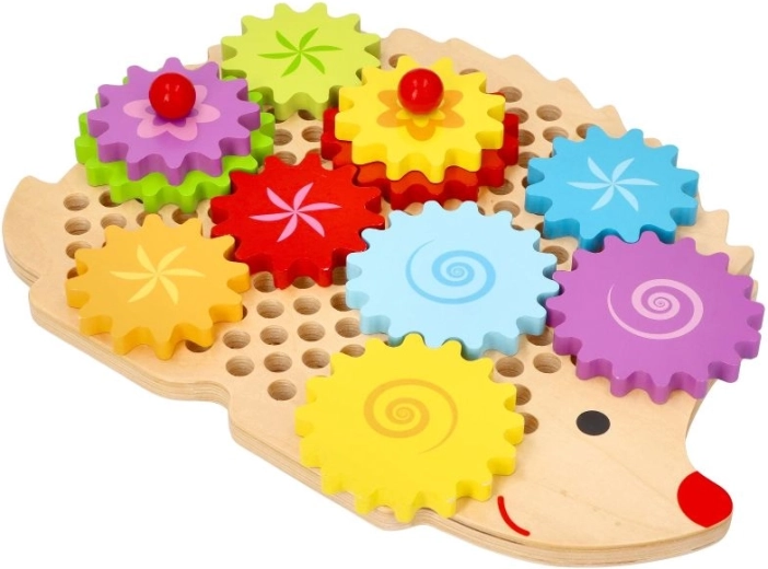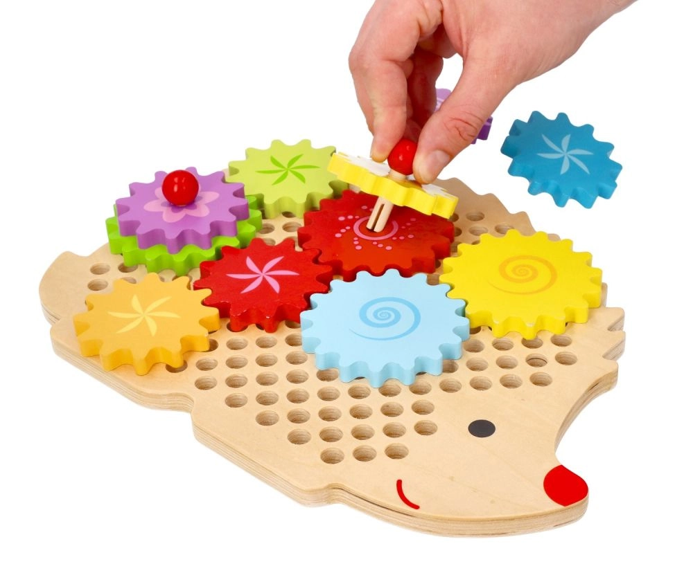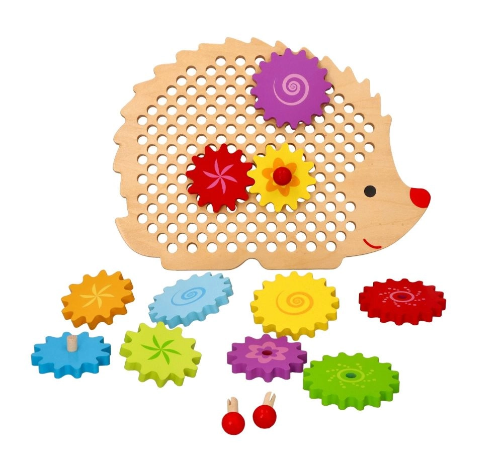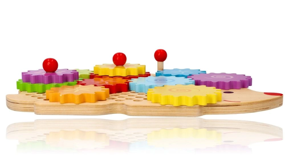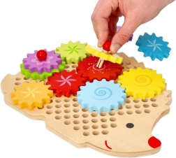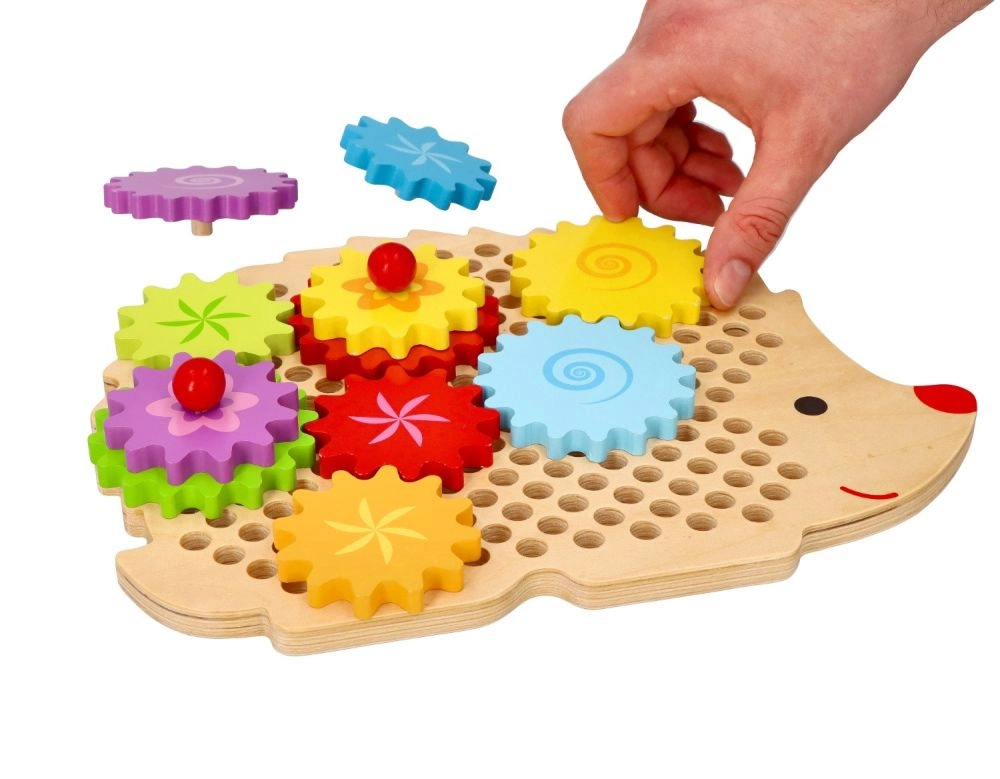 Medinė dėlionė ežiuko formos su ryškiais dantračiais skatina ankstyvąjį mokymąsi žaidžiant. Vaikai gali dėti dantračius ant kaištelių, išbandyti įvairias kombinacijas ir stebėti, kaip visi ratai pradeda suktis. Tai stiprina loginį mąstymą ir natūraliai paaiškina priežasties–pasekmės principus.