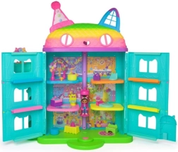 Žavus GABBY'S DOLLHOUSE vakarėlio kačiukų namelis (apie 60 cm) tiesiog pulsuote pulsuoja spalvomis, idėjomis ir interaktyviu smagumu. Vaikai gali naudodamiesi kačiukų liftu tyrinėti šešis teminius kambarius ir pasukę stogą atskleisti slaptą palėpę. Paspaudus mygtuką, pasigirsta iki 10 mėgstamų serialo garsų ir frazių, kurie sustiprina žaidimo atmosferą.