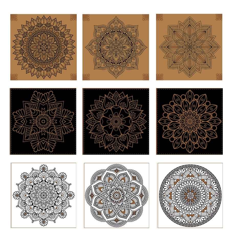 Atraškite atpalaiduojantį mandalų pasaulį su šiuo rinkiniu, kuriame yra 9 spalvinami paveikslai. Mandalos atspausdintos ant trijų fonų spalvų – baltos, juodos ir smėlinės – ir puoštos auksine metaline folija elegantiškam efektui. Puikiai tinka kūrybinei ramybei, darbui su spalvomis ir interjero dekorui. Baigtus paveikslus galima sulankstyti ir pastatyti ant lentynos arba pakabinti ant sienos.