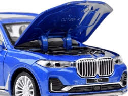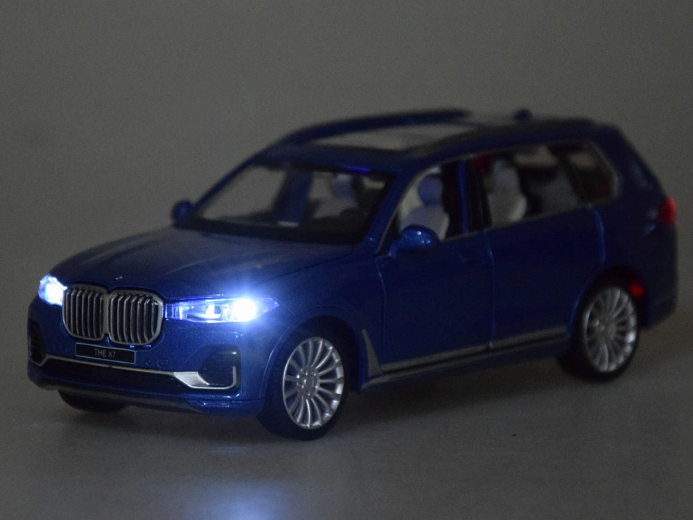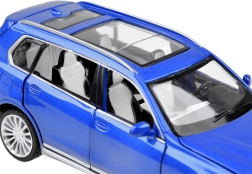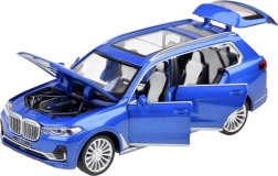 Realistiškas metalinis BMW X7 SUV masteliu 1:32 pradžiugins kiekvieną mažą vairuotoją. Jis siūlo atidarymas duris, variklio dangtį ir bagažinę, šviesos ir garso efektus, guminius ratus ir grįžtamąjį pavarą (pull-back) greitam važiavimui. Kokybiškas metalinis kėbulas ir kruopštus apdirbimas užtikrina patvarumą ir puikią išvaizdą.