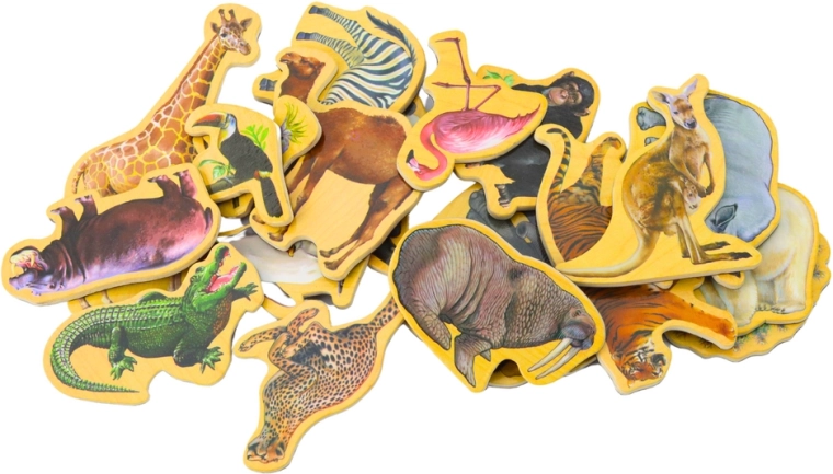 Šis 20 medinių magnetukų rinkinys atneša vaikams spalvingą faunos pasaulį tiesiai į namus. Kiekvienas gabalėlis turi realistišką spaudą, tiksliai atspindintį atskirų rūšių bruožus, todėl natūraliai skatina mokytis per žaidimą. Magnetukai lengvai limpa prie šaldytuvo, magnetinės lentos ar kito metalinio paviršiaus.
