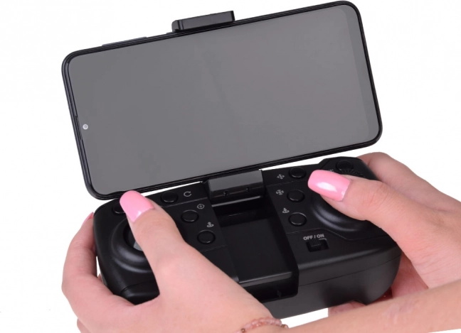 Ergonomiškas nuotolinis valdiklis suteikia tikslią drono kontrolę su daugybe funkcijų, kurios palengvina valdymą net neprofesionalams.