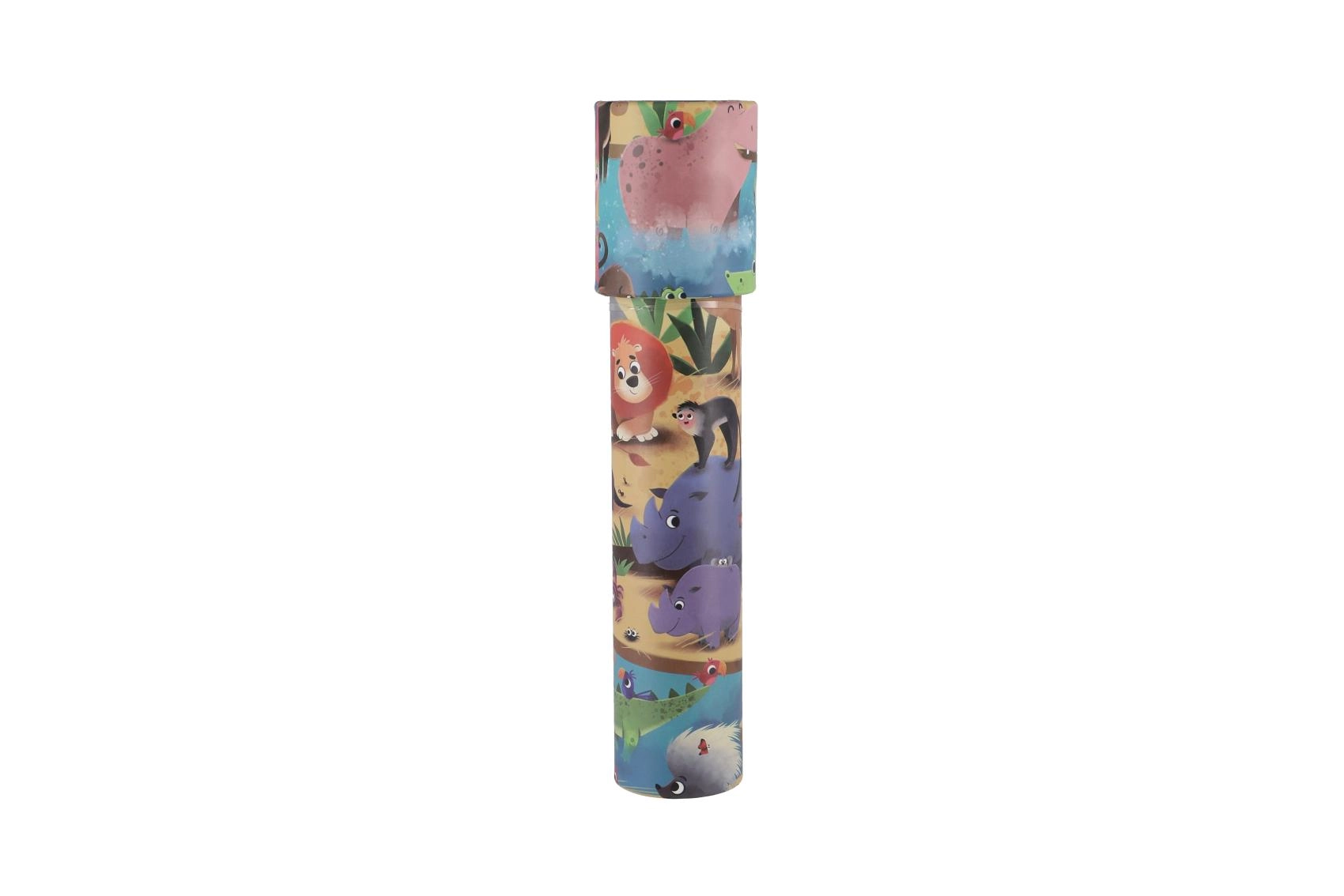 Išorinį korpusą puošia mieli gyvūnėlių motyvai, kurie skatina smalsumą ir paverčia kaleidoskopą puikia dovana. Kompaktiški matmenys 19 × 4 × 4 cm užtikrina patogų laikymą ir nešiojimą – tobulas palydovas kelionėse ir namuose.