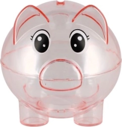 Pristatome jums permatomą kiaulės formos taupyklę, kuri yra ne tik praktiška, bet ir linksma! Ši 10 cm dydžio kiaulytė – puikus partneris pradedant formuoti taupymo įpročius.