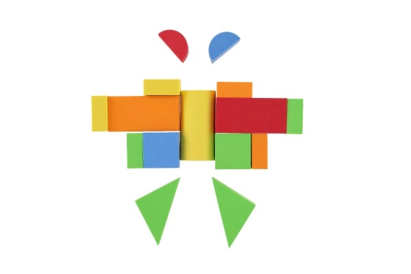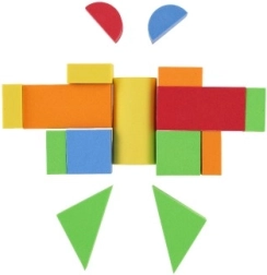 Kiekviena kaladėlė yra ryškių spalvų – geltona, mėlyna, raudona, žalia – tai patraukia vaikų dėmesį ir kartu padeda lavinti regimąjį suvokimą.