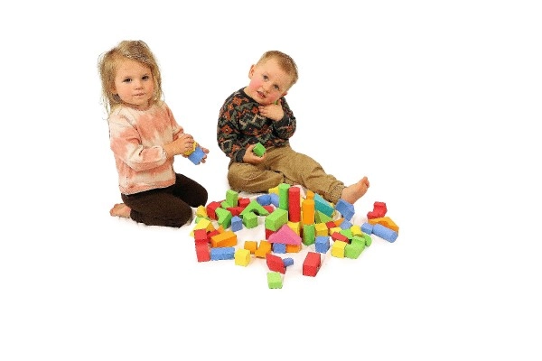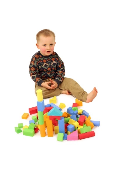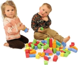 Putų kaladėlės pagamintos iš minkštos ir netoksiškos medžiagos, idealiai tinkančios mažoms vaikų rankytėms.