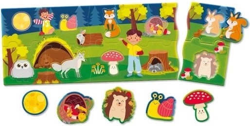 - Dėlionėje yra ryškūs miško vaizdai, kurie įkvepia ir skatina vaiko vaizduotę.