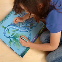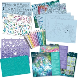 Pakuotėje rasite platų dailės priemonių ir aksesuarų pasirinkimą, su kuriais vaikai gali apvedžioti, spalvinti, piešti ir klijuoti. Aiškių žingsnis po žingsnio instrukcijų dėka jie greitai įsisavins naujas technikas ir sukurs gražių piešinių, įkvėptų magiško gyvūnų pasaulio.