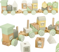 Žaidimas su traukinuku lavina akių ir rankų koordinaciją, gerina suėmimą ir dėliojimą, kartu ugdo erdvinį mąstymą ir loginį samprotavimą. Tvirtas medinis korpusas užtikrina, kad žaislas atlaikys daugybę bendrų nuotykių. Supakuota į kartoninę dėžutę – puiki dovanos idėja.