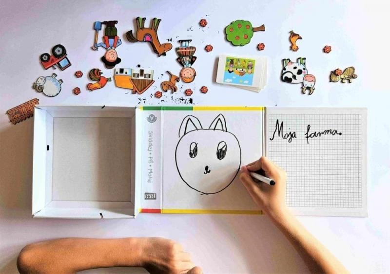 Šis išmanus rinkinys sujungia rašymą, trynimą ir magnetinių paveikslėlių dėliojimą į vieną kompaktišką žaidimą. Vaikai gali lavinti raides ir skaitmenis, piešti trinama flomasteriu ir kurti savo ūkio sceneles. Dėl magnetų atskiros detalės tvirtai laikosi ant pagrindo, todėl tai ideali pramoga automobilyje ir namuose.