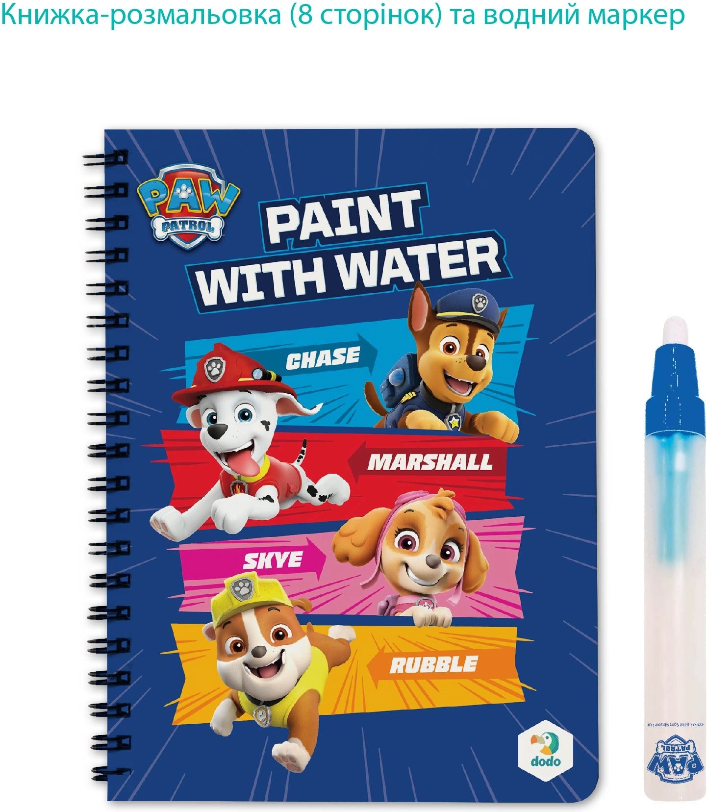 Vandens piešimas DODO su mėgstamais Tlapkių patrulio personažais – puiki veikla namuose ir kelionėse. Dėl specialių puslapių spalvos pasirodo tik susilietus su vandeniu, todėl nedėmi nei drabužių, nei baldų. Išdžiūvus spalvos išnyksta ir vaikai gali vėl nuspalvinti paveikslėlius.