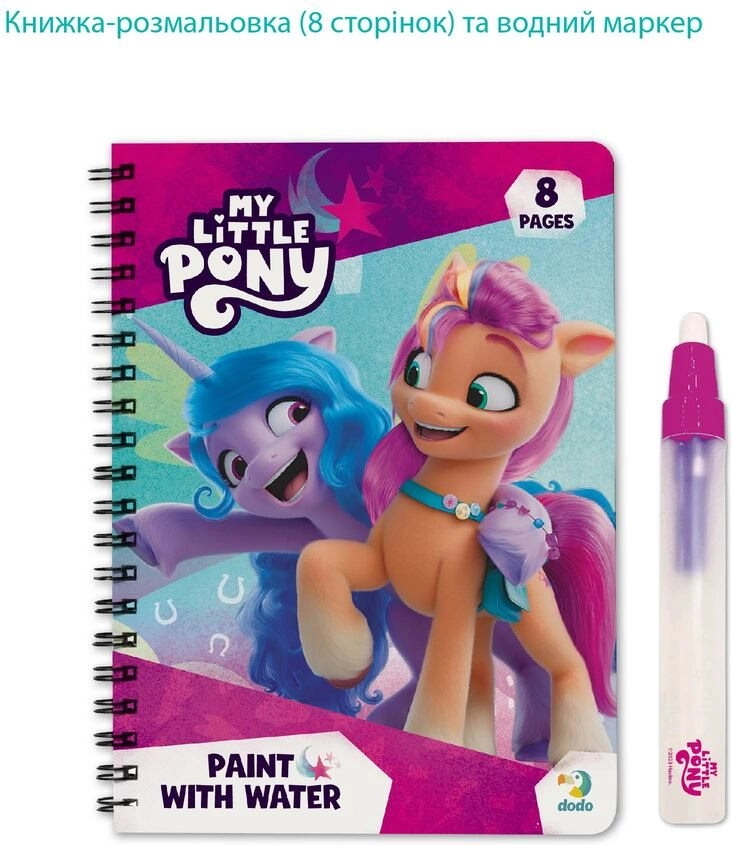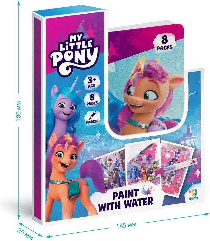 Vandens piešimas My Little Pony – kūrybinis rinkinys vaikams, skatinantis vaizduotę be įprastų dažų. Tereikia pripildyti pridėtą rašiklį vandeniu ir stebėti, kaip mėgstamų ponių paveikslėliai akimirksniu nusispalvina. Išdžiūvus spalvos pranyksta ir vaikas gali piešti iš naujo.