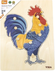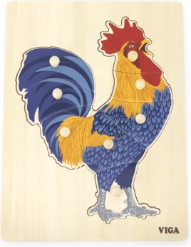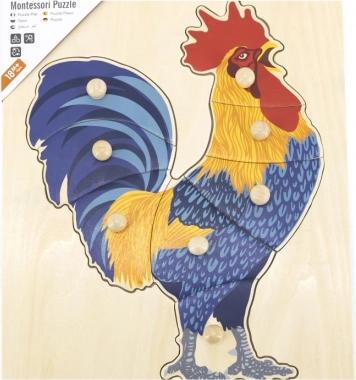 Ši medinė dėlionė su gaidžiu sukurta pirmajam loginiam žaidimui ir sensoriniam pažinimui. Vaikai dėlioja paveikslą ne tik pagal iliustraciją, bet ir pagal atskirų detalių formas, kas stiprina erdvinį suvokimą ir susikaupimą. Sagos tipo rankenėlės ant kiekvienos detalės palengvina suėmimą net patiems mažiausiems pirštukams.