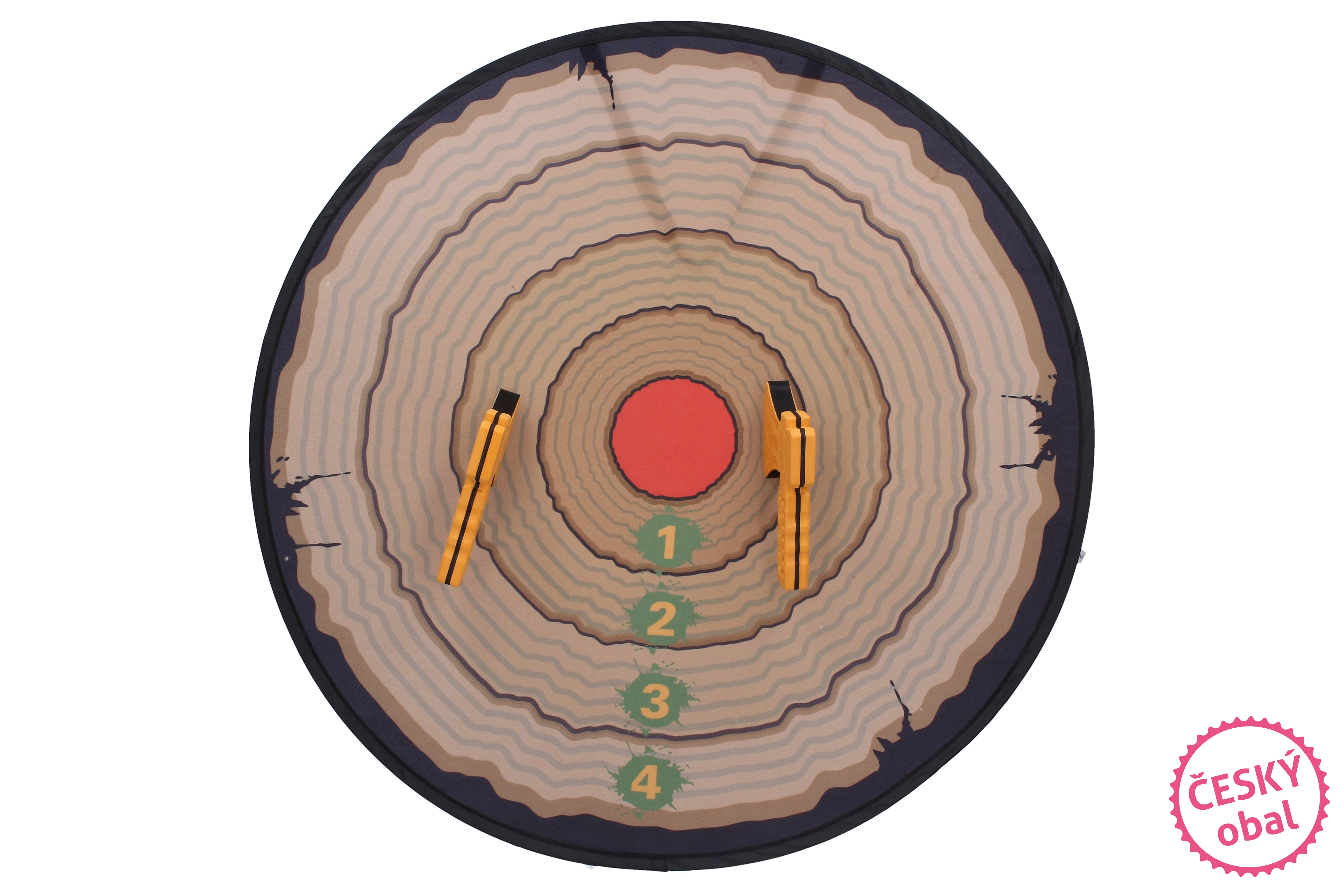 Atraskite saugų ir įtraukiantį žaidimą vaikams nuo 6 metų. Didelis 66 cm skersmens taikinys dėl siurbtukų paprastai tvirtinamas prie lygių paviršių, o lengvi mėtomi kirviai su lipniu velcro patikimai laikosi ant taikinio. Puikiai tinka lavinti motoriką, akies ir rankos koordinaciją bei varžymosi dvasią.