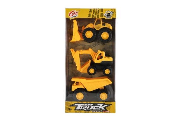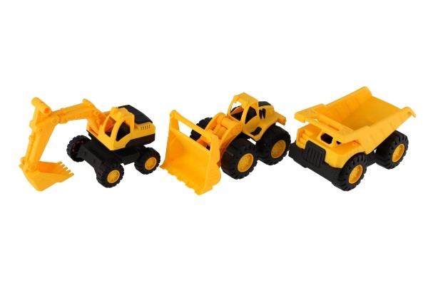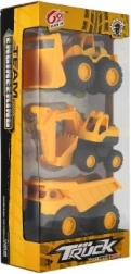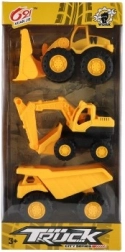 Ekskavatorius, buldozeris ir savivartis – visa mini statyba vienoje pakuotėje realistiškam žaidimui.