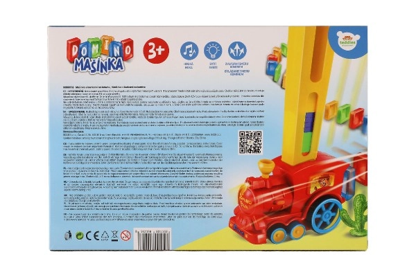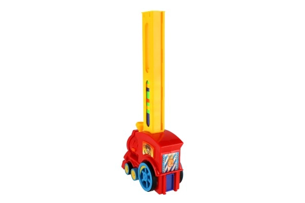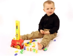 Traukinukas važiuodamas pats stato spalvotas kaladėles į ilgą eilę. Vaikai mėgausis sklandžiu ir greitu pasiruošimu didelėms domino kaskadoms.