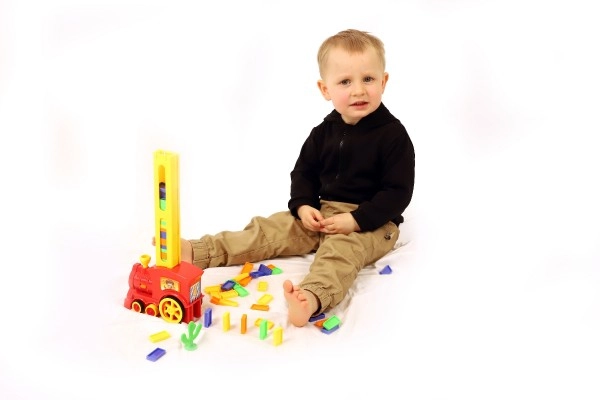 Smagus domino traukinukas, kuris važiuodamas pats sudėlioja iki 60 spalvotų kaladėlių į tvarkingą eilę. Siūlo automatinį krypties keitimą atsitrenkus, paprastą važiavimo krypties valdymą pasukant kaminą ir įspūdingus šviesos bei garso efektus. Puiki priemonė vaikų smulkiajai motorikai, kantrybei ir kūrybiškumui lavinti.