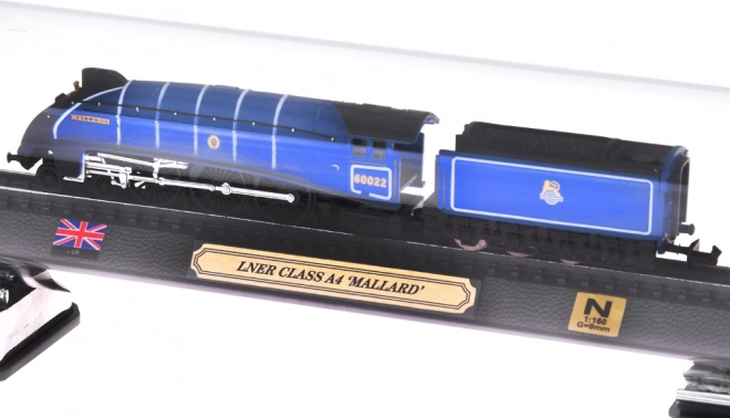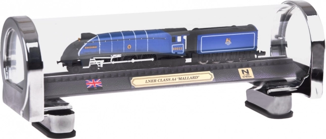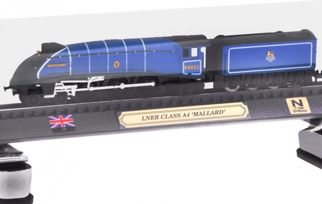 Šis preciziškas legendinio britų lokomotyvo LNER Class A4 „Mallard“ modelis perteikia tikslias proporcijas ir gausias detales populiariu 1:160 (N) masteliu. Mėlyna dažyba, subtilios linijos ir realistiškos važiuoklės detalės pabrėžia aerodinaminę, rekordus pasiekusio garvežio formą.