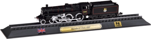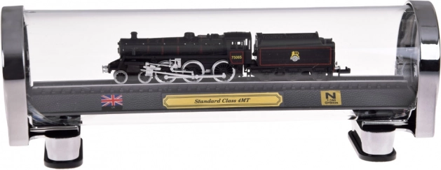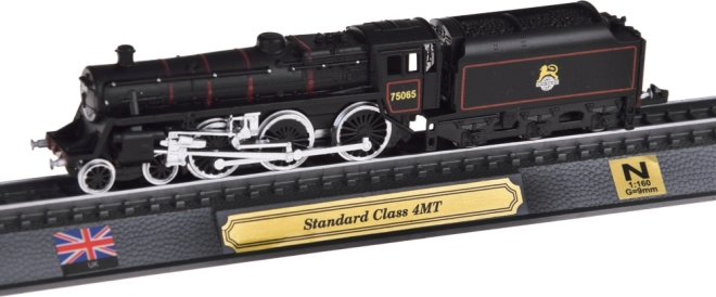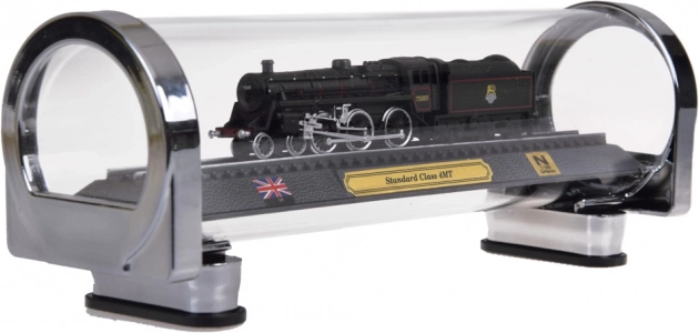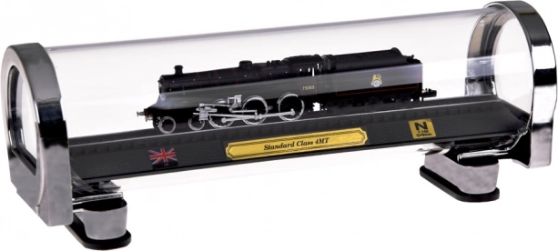 Šis detalus britiško garvežio STANDARD CLASS 4MT modelis – idealus pasirinkimas geležinkelio entuziastams ir stilingų dekoracijų mėgėjams. Preciziškas atlikimas 1:160 masteliu išryškina autentiškas detales, kontrastinį dažymą ir subtilų ratų linijavimą. Modelis pritvirtintas prie bėgių atkarpos ant elegantiško pjedestalo su plokštele, Jungtinės Karalystės vėliava ir mastelio žyma.